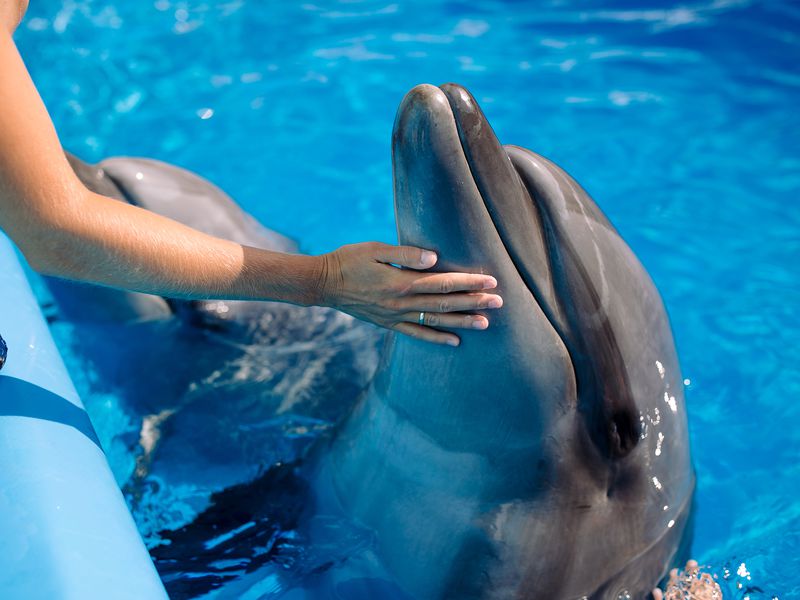 Фотографироваться с дельфинами самостоятельно запрещается!