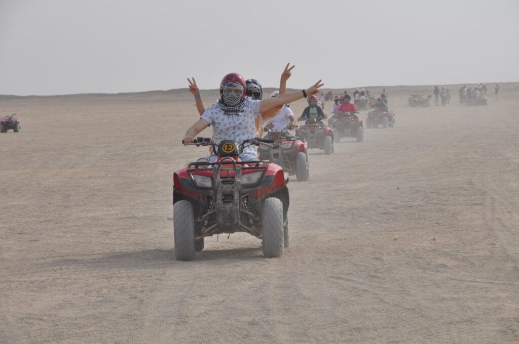 Мото сафари –это экскурсия на квадроциклах по просторам египетской пустыни. Вы можете насладиться прекрасными пейзажами и получить удовольствие от поездки. Сафари на квадроциклах не занимает много времени и к тому же у него еще один плюс – для того, чтобы сесть за руль четырех колесного мотоцикла, вам не потребуется водительское удостоверение.